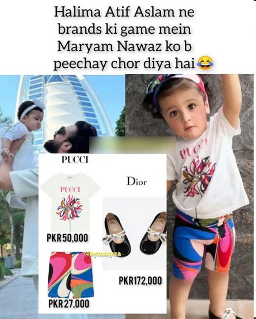 تاہم بعد میں بچی کے پہنے گئے برانڈڈ کپڑے اور جوتے گفتگو کا موضوع بن گئے۔